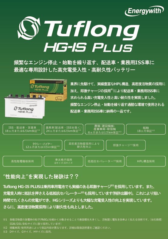 HSG90D26R エナジーウィズ Tuflong HG-IS PLUS タフロング バッテリー 配送車・業務用アイドリングストップ車に