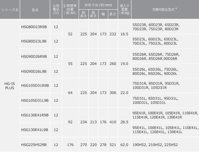 適合バッテリー : 55D26R, 65D26R, 75D26R, 80D26R, 85D26R, 90D26R